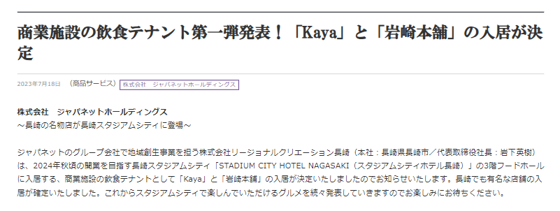 商業施設の飲食テナント第1弾に『Kaya』と『岩崎本舗』の入居が決定したことをメディアでご紹介いただきました