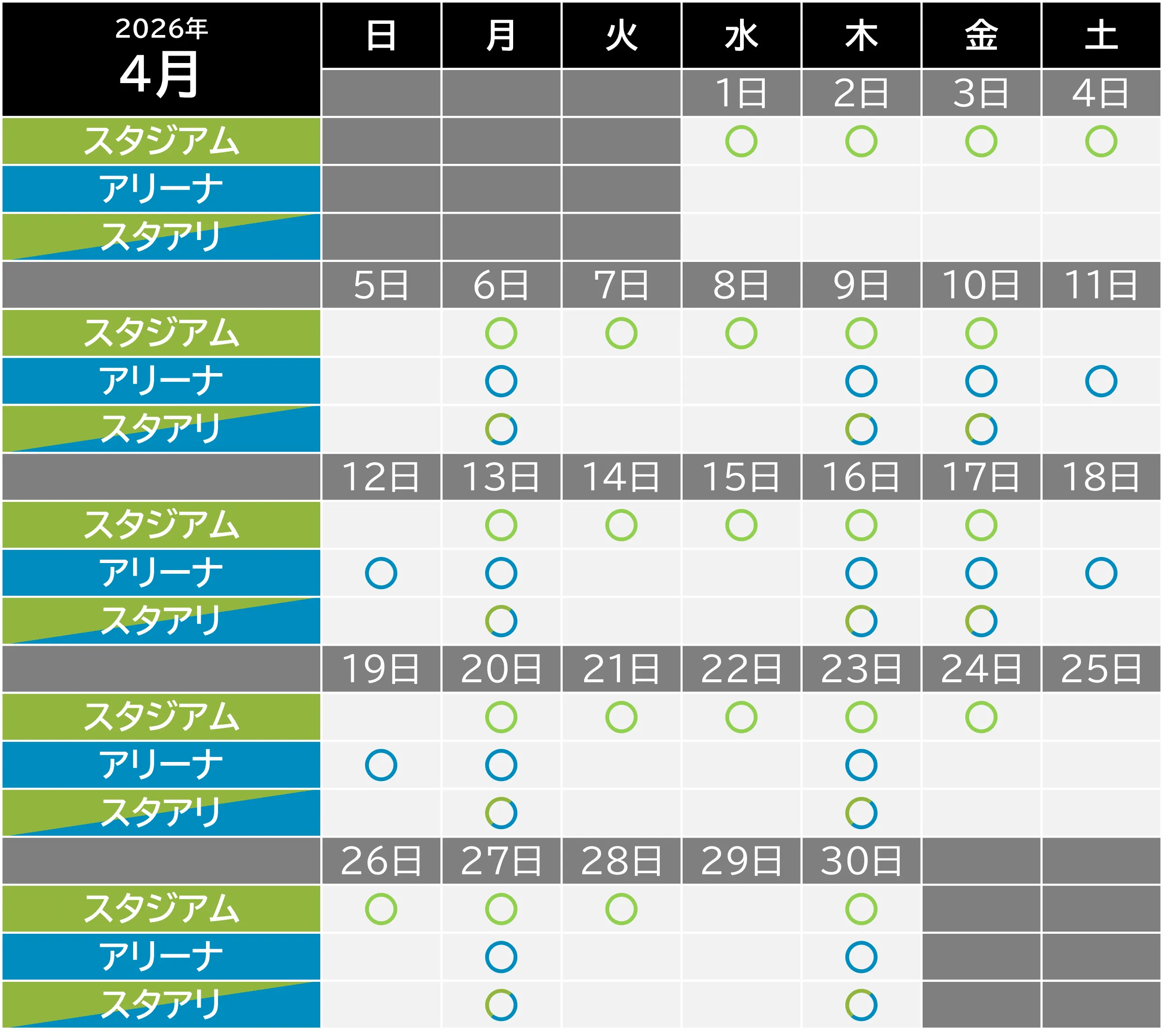 イベントや団体予約の兼ね合いで急遽予定が変更となる場合がございます。