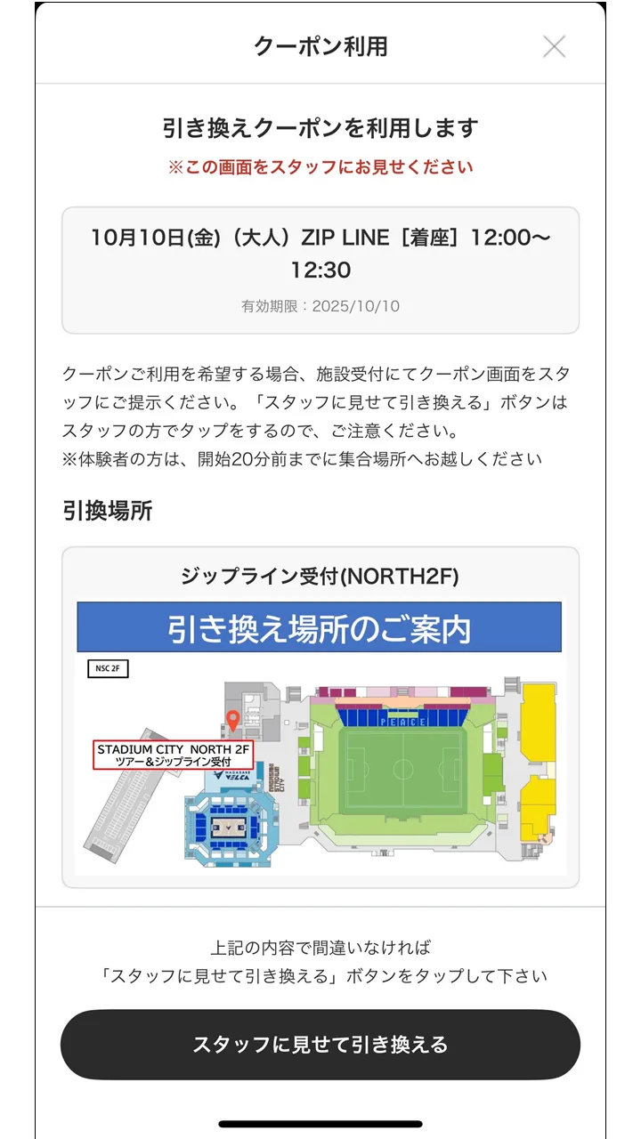• 体験当日にクーポン画面をスタッフにご提示ください。(スクリーンショットではボタンが押せません。