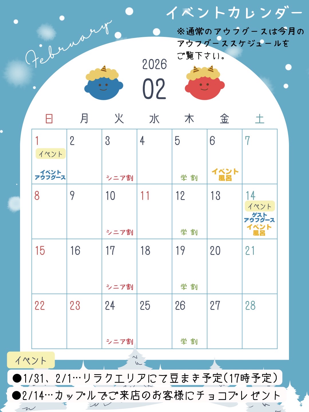 *The rental towel set (face towel, bath towel) and indoor wear are included in the admission fee.