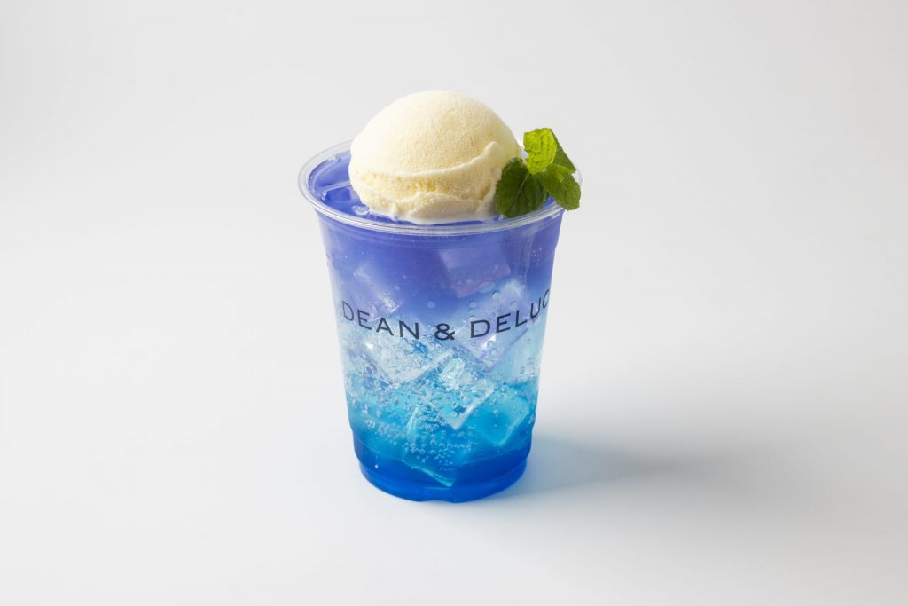 ●長崎マイヤーレモンのVレモネードフロート¥864(税込) 長崎県平戸古川農園のマイヤーレモンを使用したシロップでつくるレモネードソーダ。 バタフライピーベースのアールグレイティーをほんのり加え、さっぱりとした味わいにしあげました。 青の綺麗なグラデーションを混ぜあわせながら色と味わいの変化をおたのしみください。 |