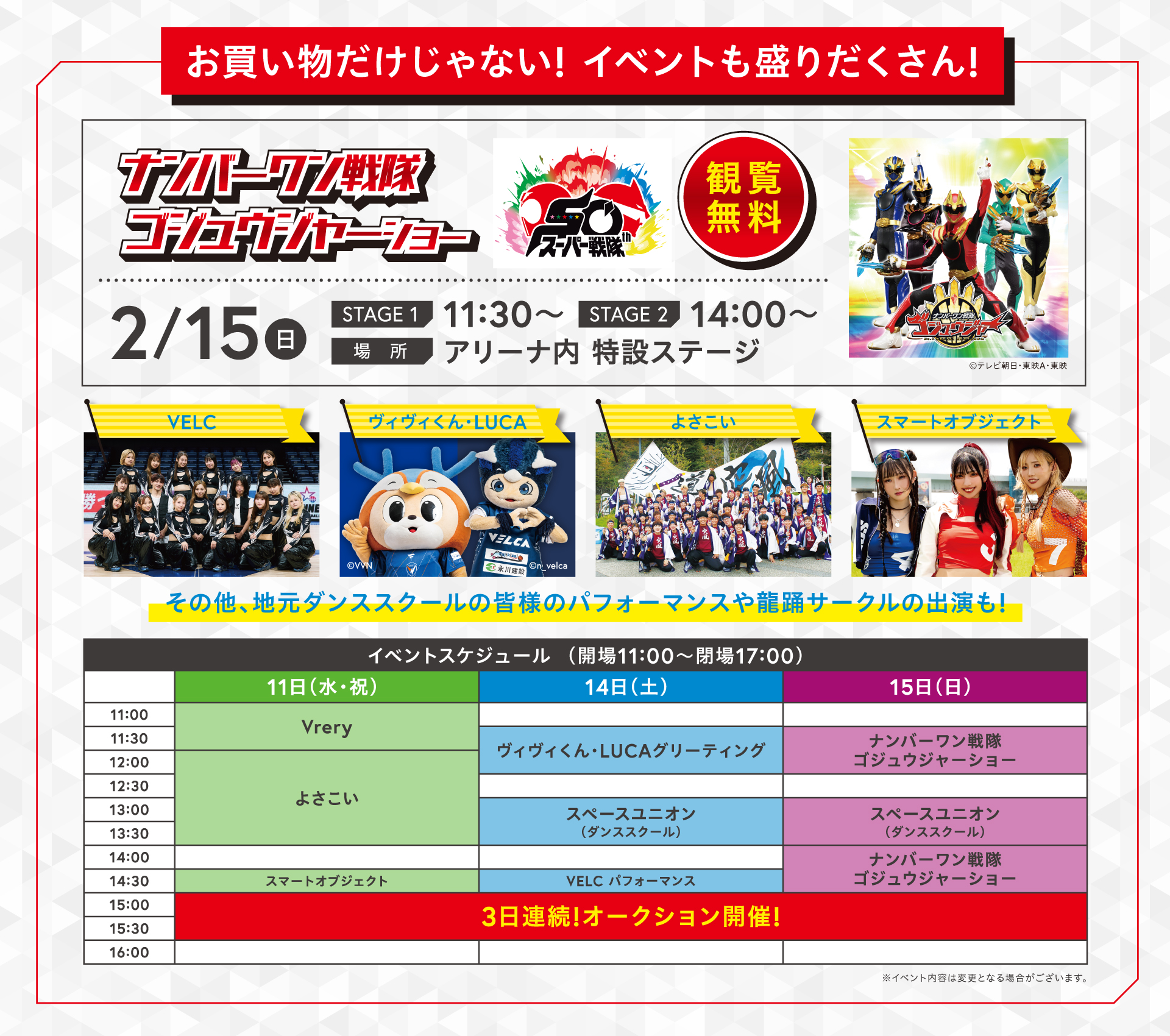 ◆開催日: 2月11日(水・祝)・2月14日(土)・2月15日(日)