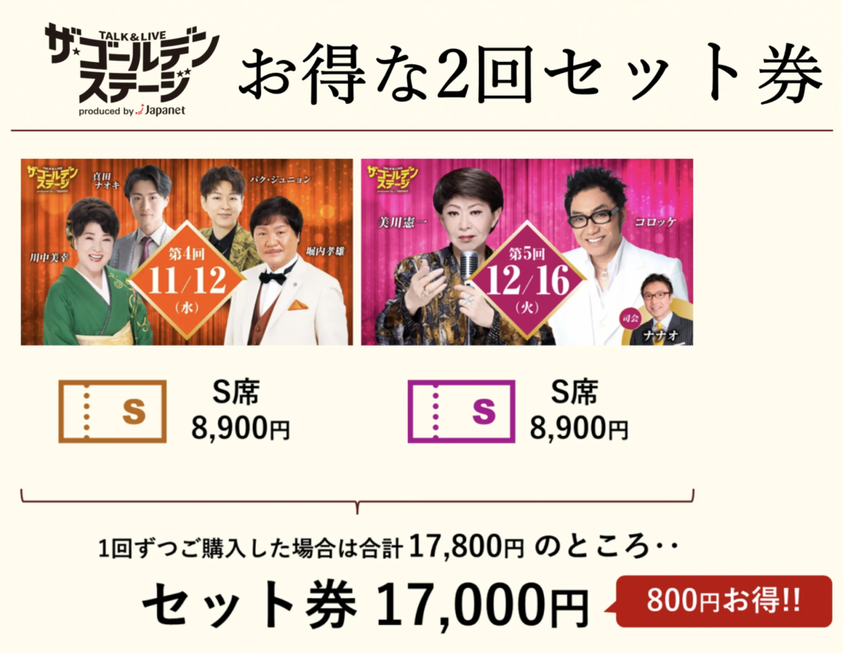 - ※プレゼントとしてご購入される方は、公演日30日前迄にお電話での注文となり、チケットのお送り先住所を注文時にお伝えください。