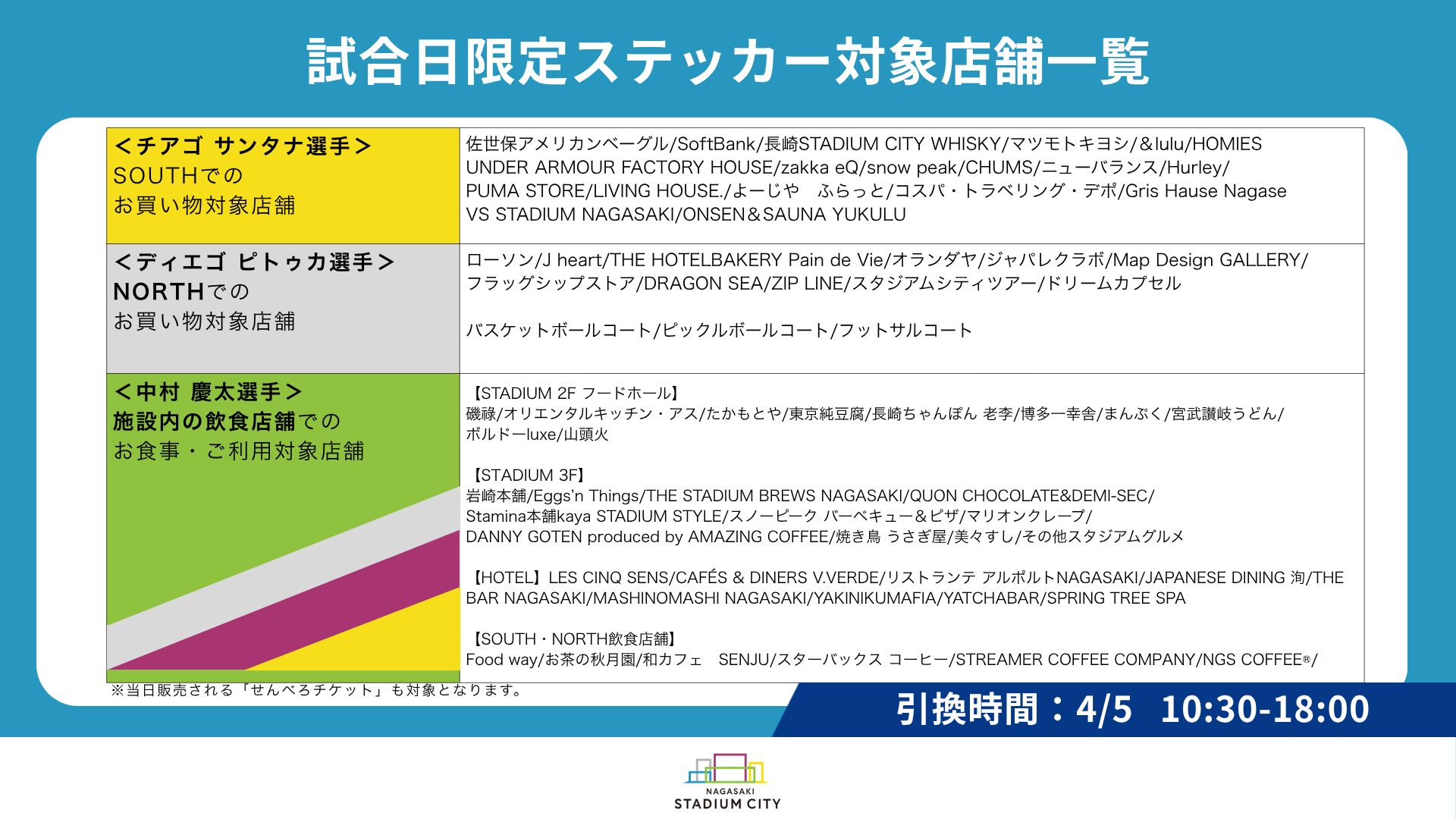 4/5(日)V・ファーレン長崎 試合日限定 イベント・特典情報