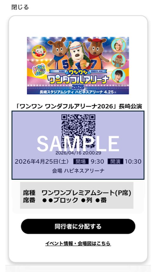 *ご来場される皆さまがお揃いで一緒にご入場される場合、チケットの分配は必要ございません。入場時にご購入者様(代表者様)が全員分のチケットのご提示をお願いいたします。