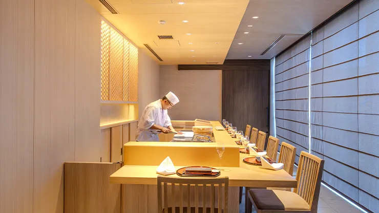 当店の寿司カウンターは、完全個室のプライベート空間をご用意しております。熟練の職人が一貫一貫丁寧に握る寿司を、目の前でお楽しみいただけます。