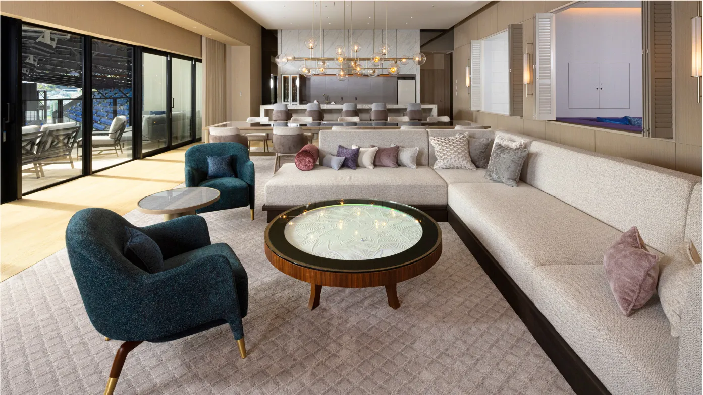 さらに壮大なサッカースタジアムの景色を一望する専用の広々としたバルコニーを完備。