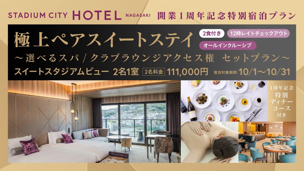 1周年を迎えるスタジアムシティホテル長崎で、非日常の充実したひとときをお過ごしください。