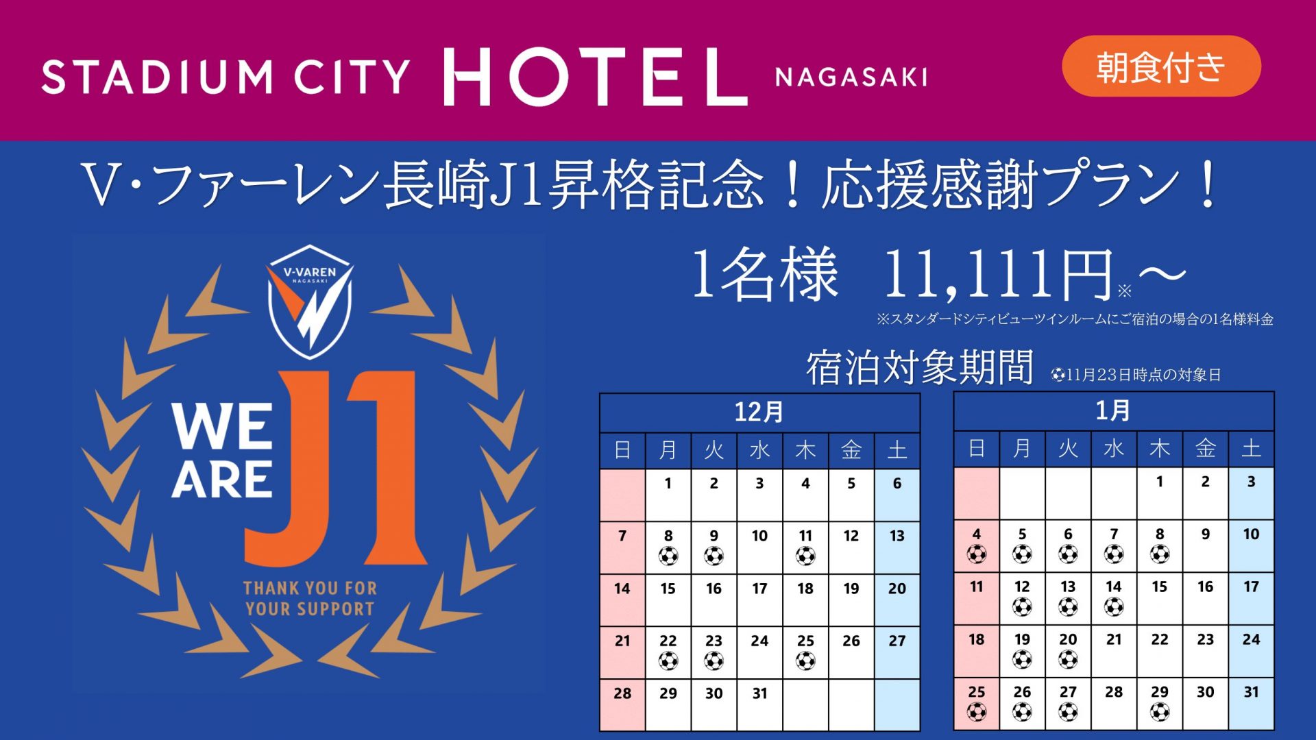 J1昇格の歓喜をかみしめながら、スタジアムシティホテル長崎で最高の思い出をお作りください!