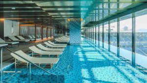 スタジアムシティホテル長崎ではスタジアムを望みながら、プールやサウナ、天然温泉を楽しむことができます。解放感溢れる中で日常を忘れ楽しみ、身も心も癒すことができる特別な体験を心ゆくまでお楽しみください。