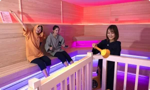 • プレミアムサウナ利用の際は水着+館内着, もしくは館内着の着用をお願いしております。水着は持ち込みも可能です。