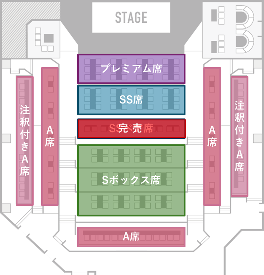 ・「S BOX席」を2枚でご購入の方、および「A席」を1枚でご購入の方は、他のお客様との相席でのご案内となります。