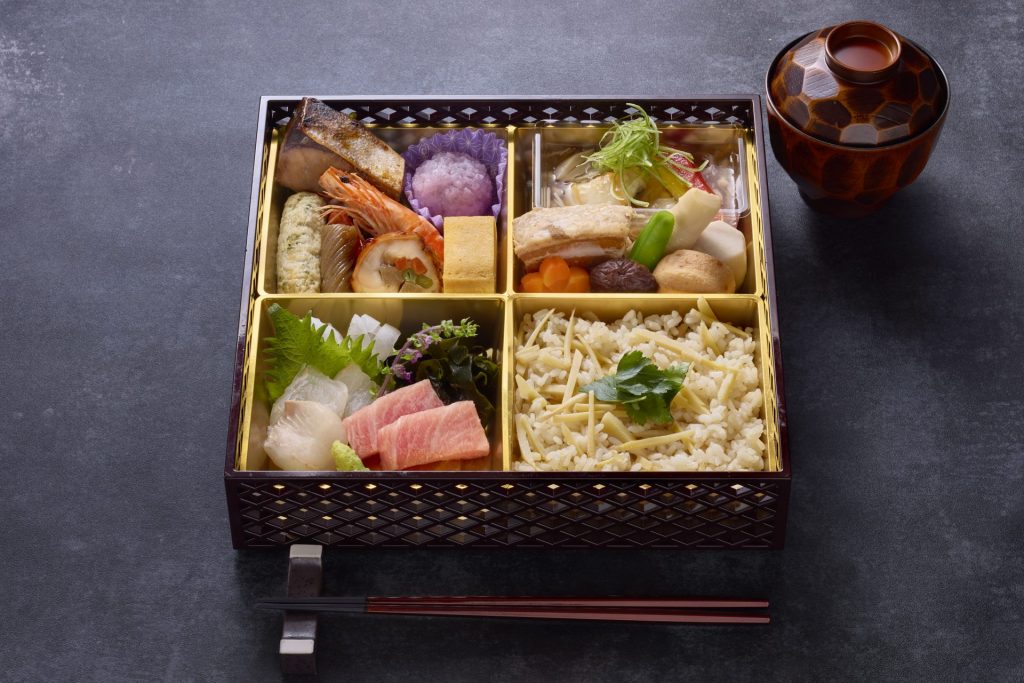 鰤の照り焼きや海老、さらには季節の「桜餅」まで。少しずつ多彩な味を楽しみたい、お昼にぴったりの構成です。