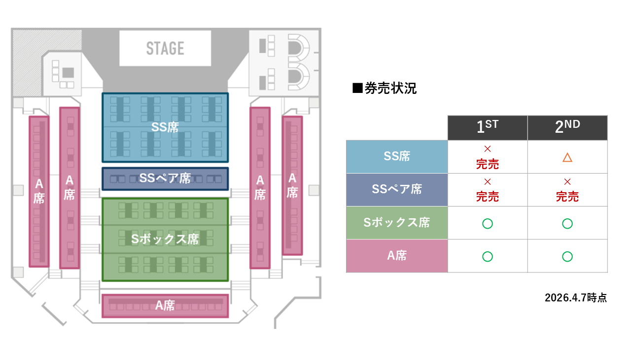 ・「S ボックス席」を1枚/2枚/3枚でご購入の方は、他のお客様との相席でのご案内となります。
