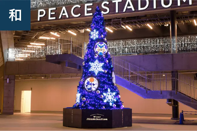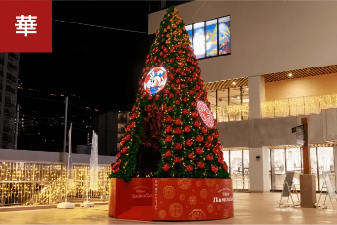 日本の伝統的な美しさを表現しました。波佐見焼をモチーフとしたイルミネーションが和の心を象徴する静けさと品格を映し出し、柔らかな光に包まれたさまざまな光源が、落ち着いた雰囲気をイメージしています。