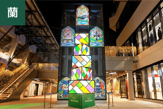長崎とオランダの歴史的なつながりを表現しました。色とりどりに輝くステンドグラスが、かつて長崎を通じて日本と世界を結んだ交流の証を表現し、光が紡ぐ異文化の交わりと、未来へ続く希望の架け橋になる様子をイメージしています。