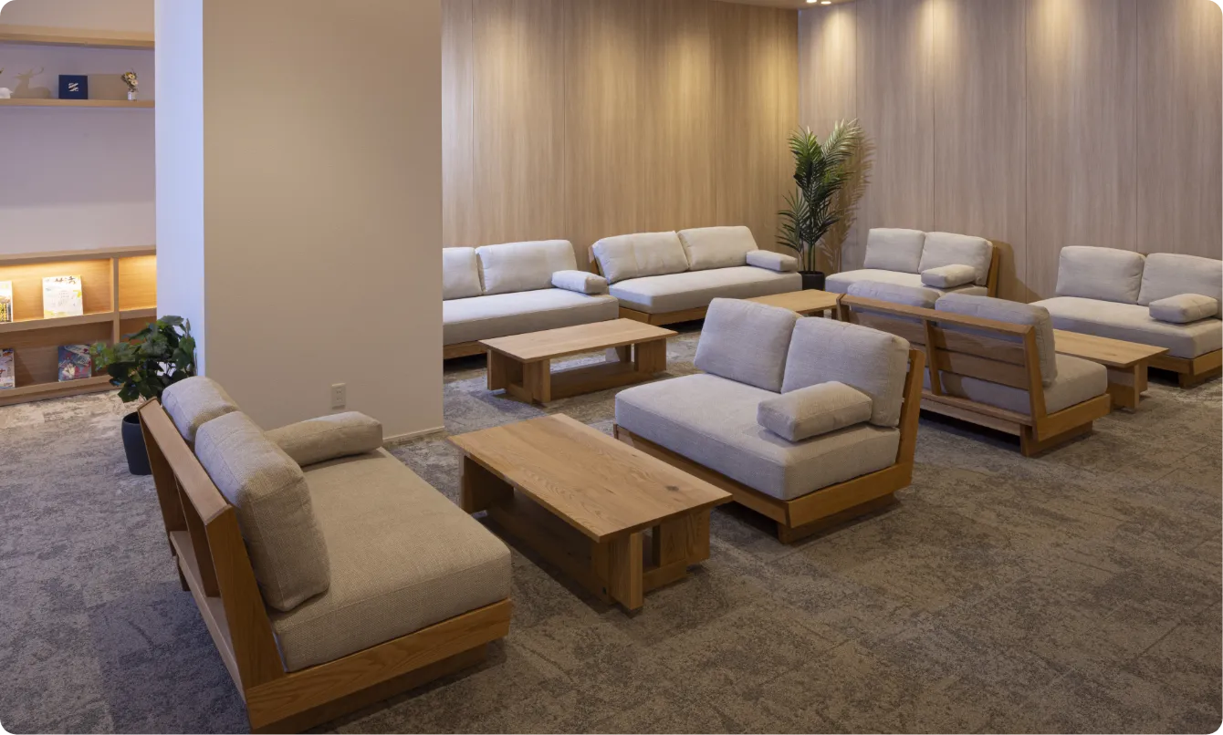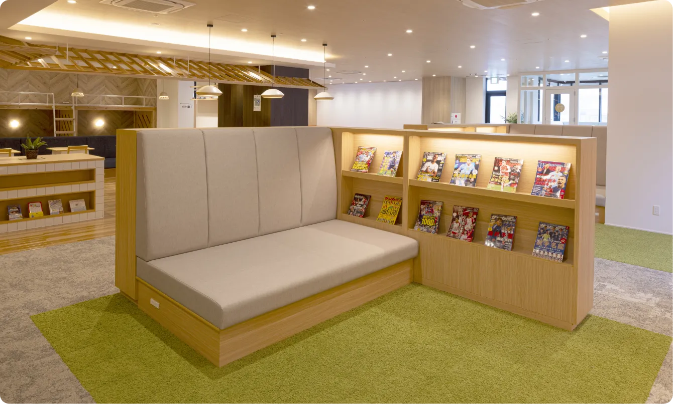 秘密基地のように楽しめる半個室型や、ゆったりと過ごせるソファエリア、炎の揺らめきを眺めながら心落ちつける暖炉、子供が安心して遊べるキッズスペースなど、好みに合わせて様々な場所で楽しめます。