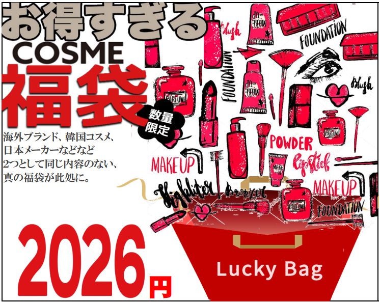 装有相当于5万日元的商品和优惠券&赠品的幸运包限量销售!