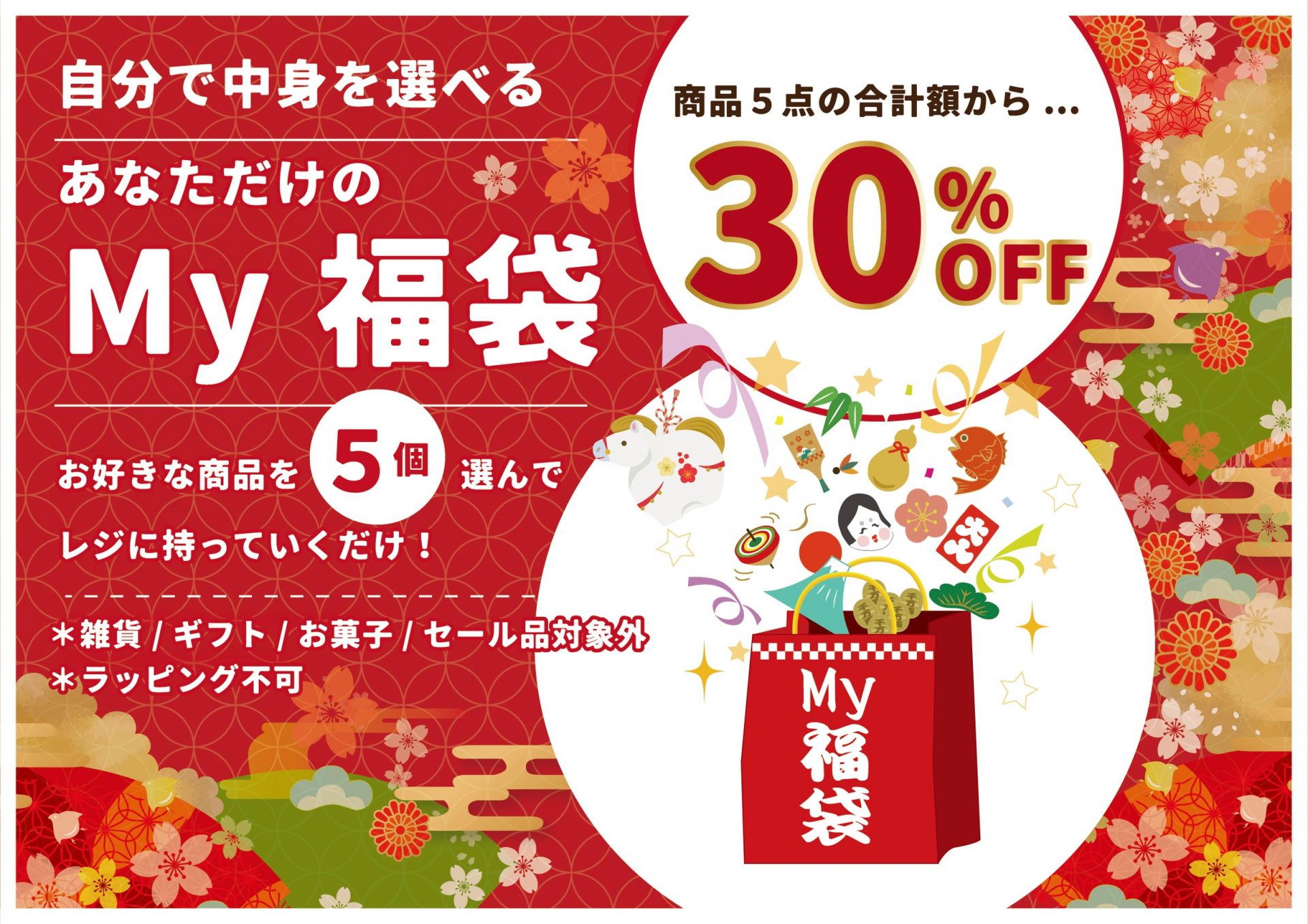 可选择的My福袋!拿5件喜欢的店内商品到收银台结账,合计金额打30%!(部分不适用)