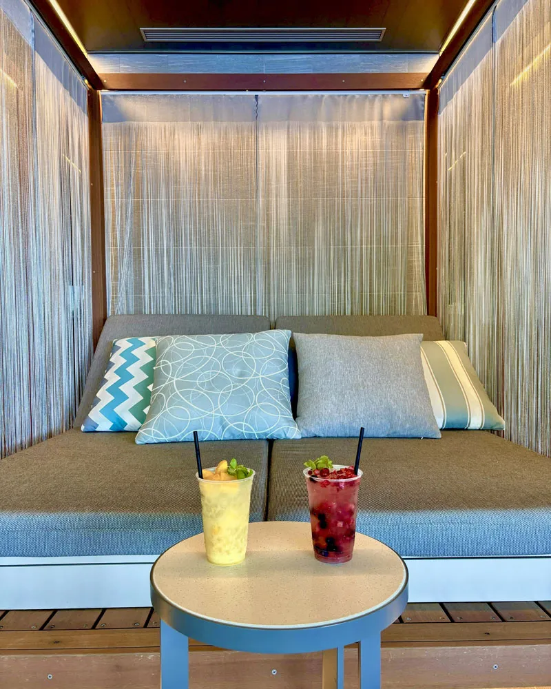 备有可放松的长椅及躺椅,可在接近私密状态下享受的附帘式灯笼。