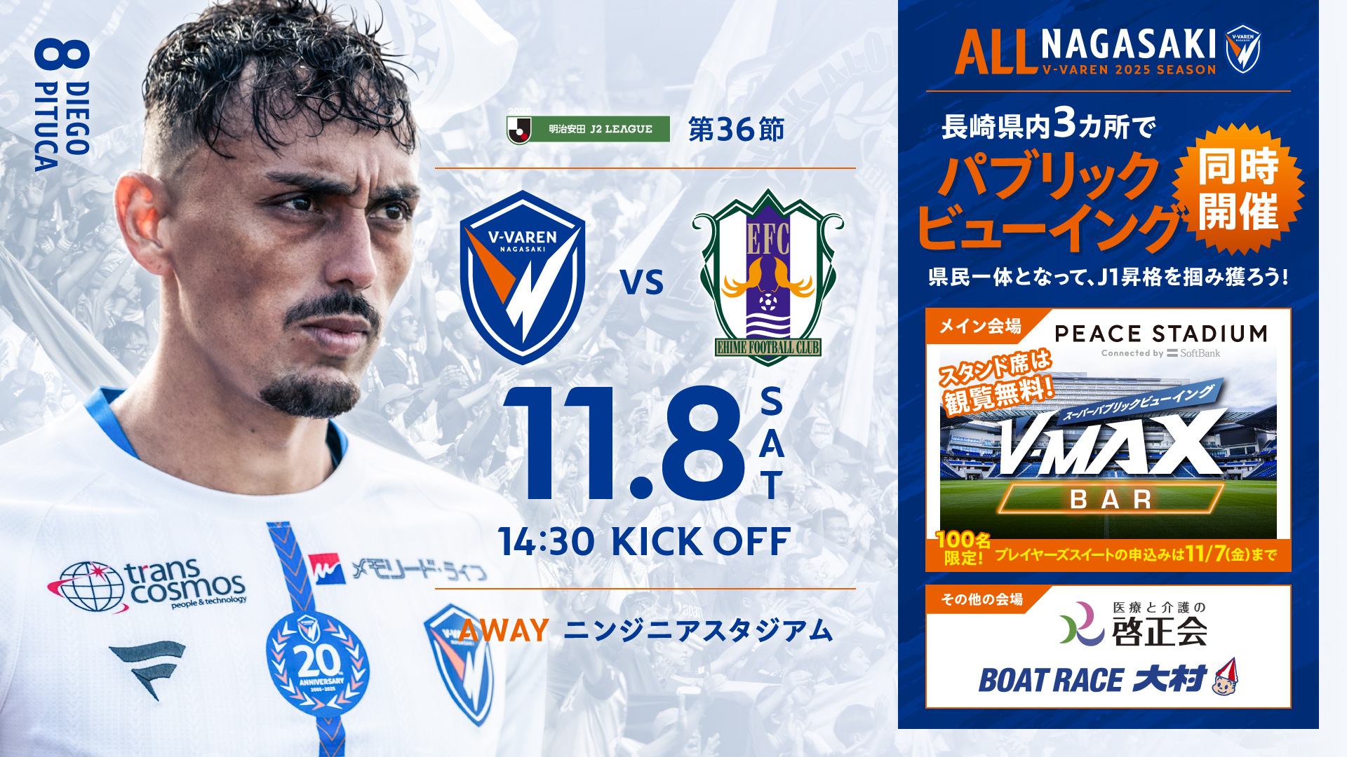 本頁面為11/08 (六) 愛媛FC戰『Super Public ViewingV-MAXBAR in PEACE STADIUM Connected by SoftBank』的銷售頁面。